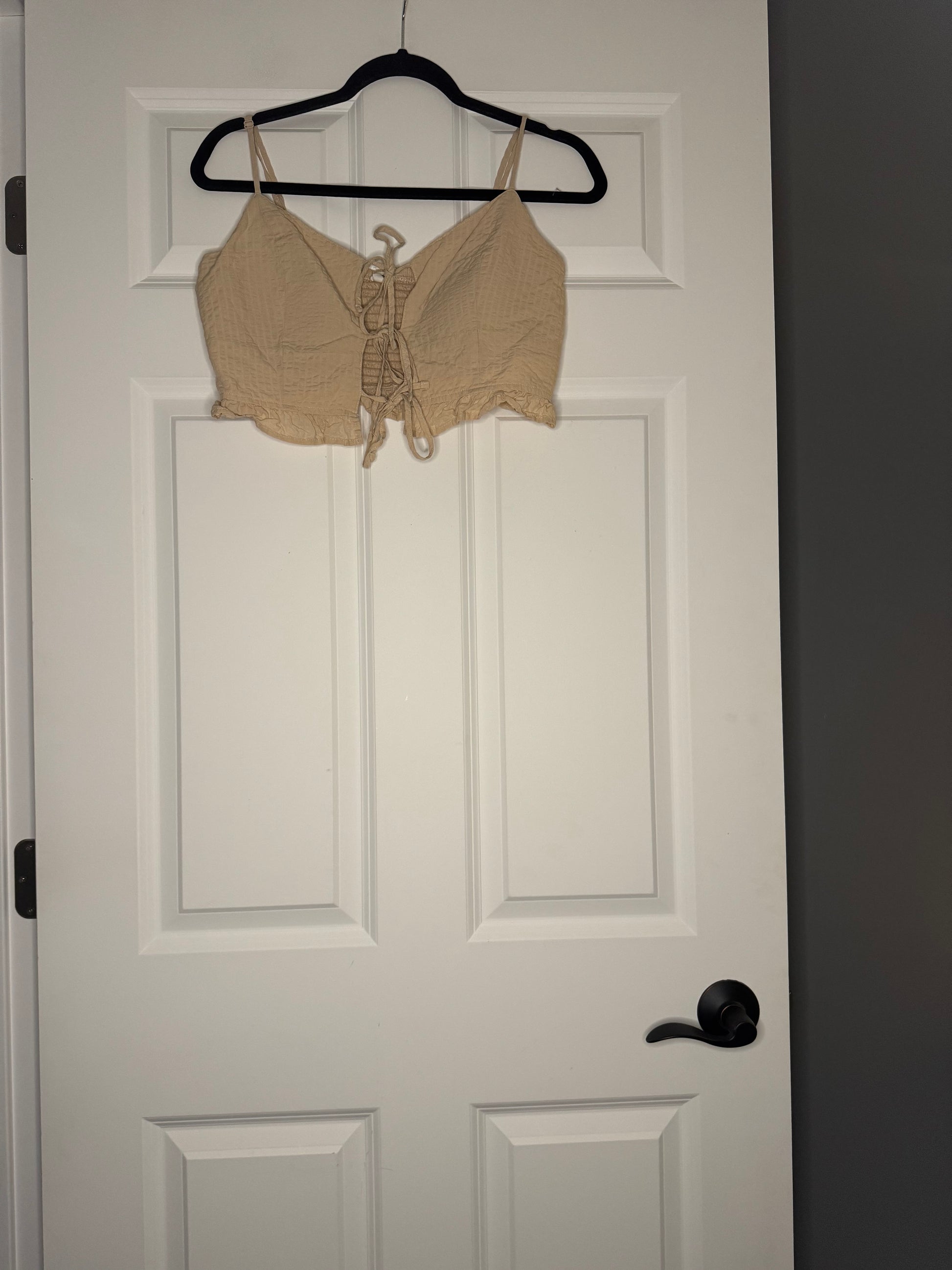Aerie small sleeveless crop blouse built in bra beige