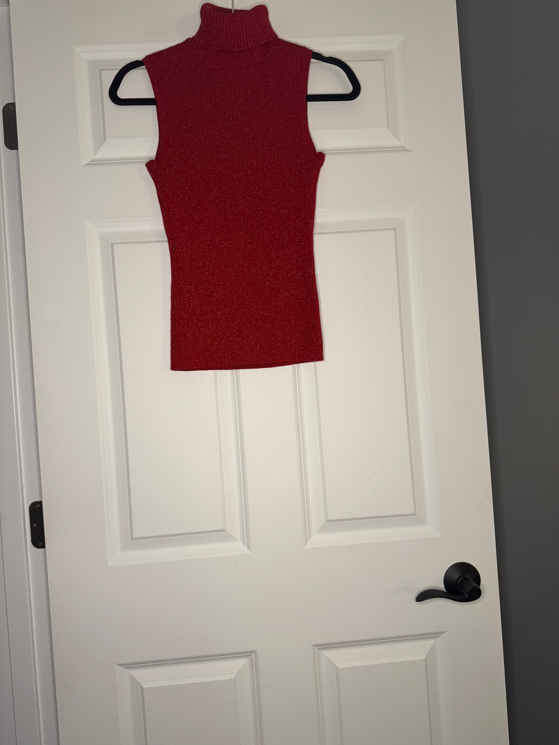 Cable and gauge sleeveless turtleneck sweater medium red metallic sparkle