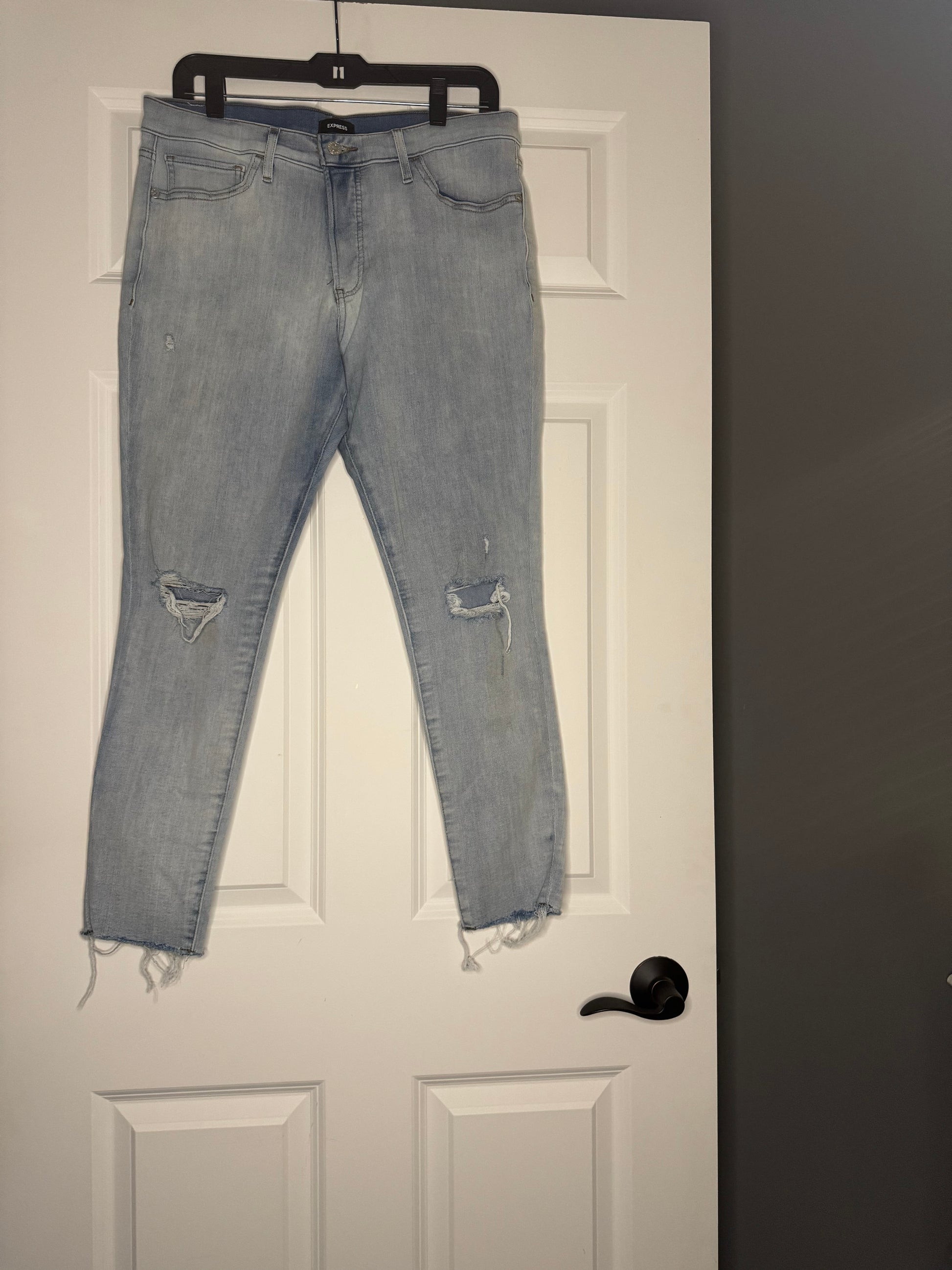 Express skinny high rise 4 way hyper stretch jeans 12 r light wash