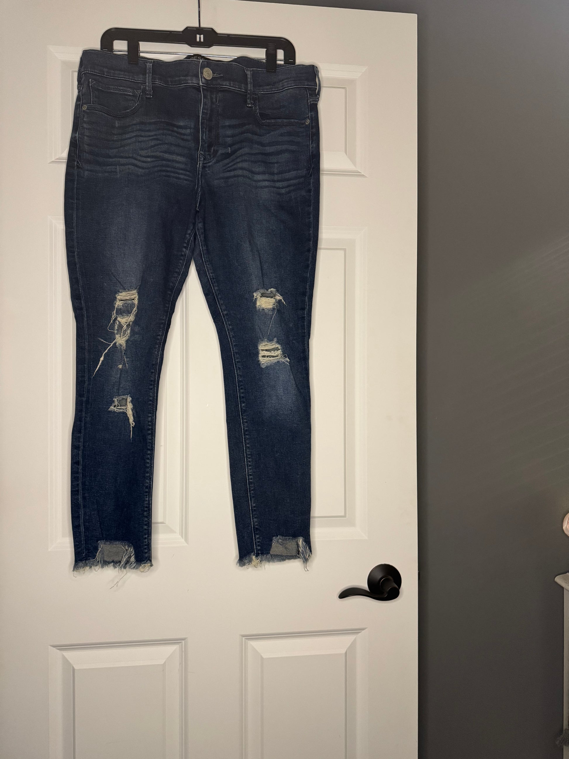 Express ultimate stretch ankle legging mid rise jeans 14 distressed