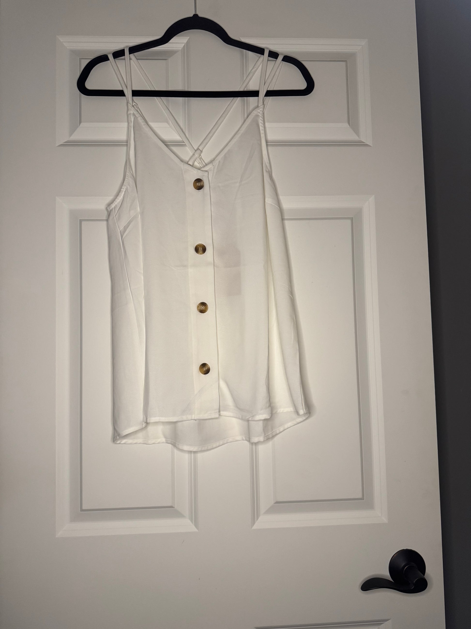 Fsl apparel sleeveless blouse button up criss cross back large white nwt