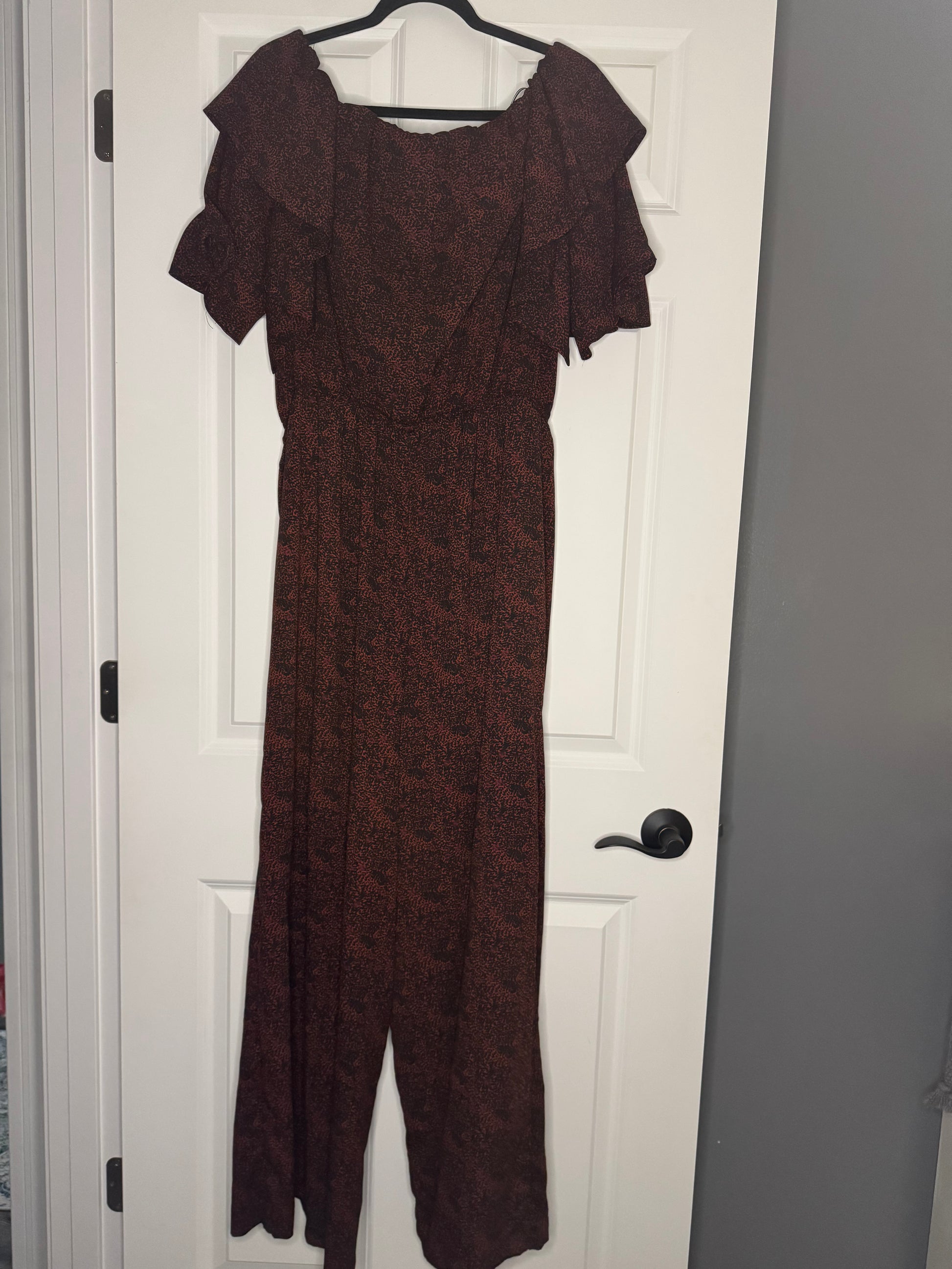 Gibson Latimer off the shoulder jumpsuit large red black print
