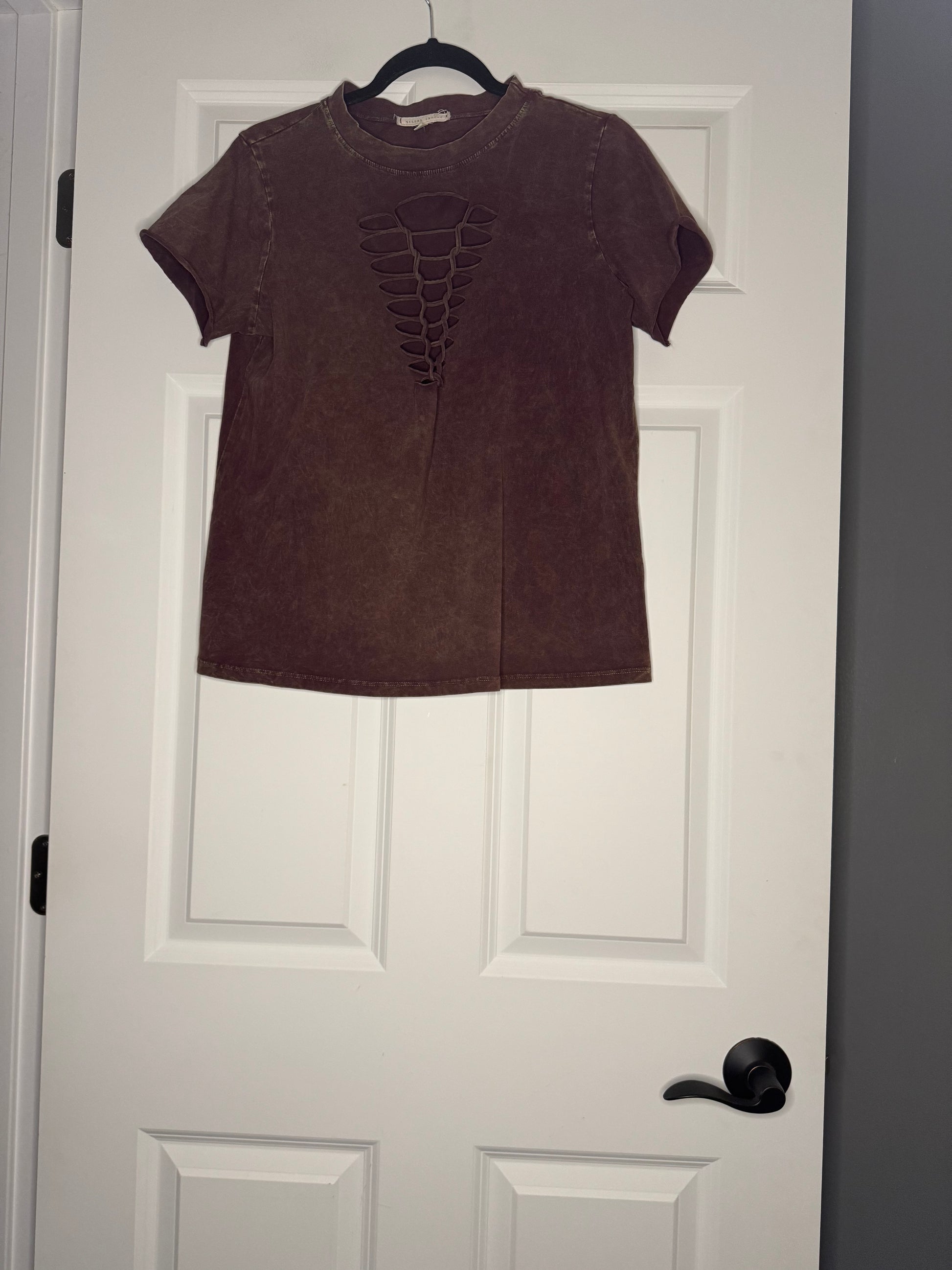 Gilded intent short sleeve top medium w cut out plum acid wash