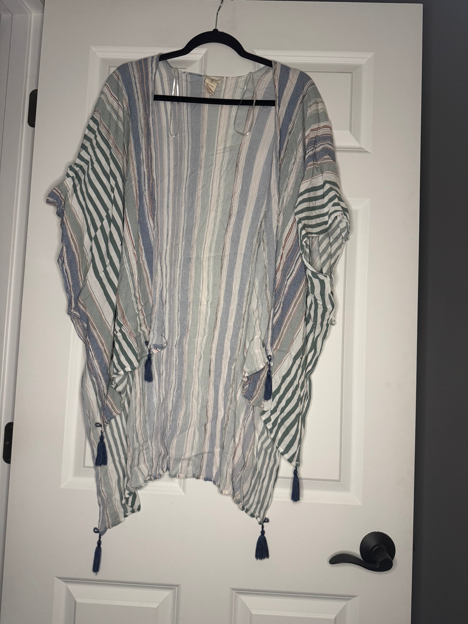 Hem and thread one size kimono green blue brown cream