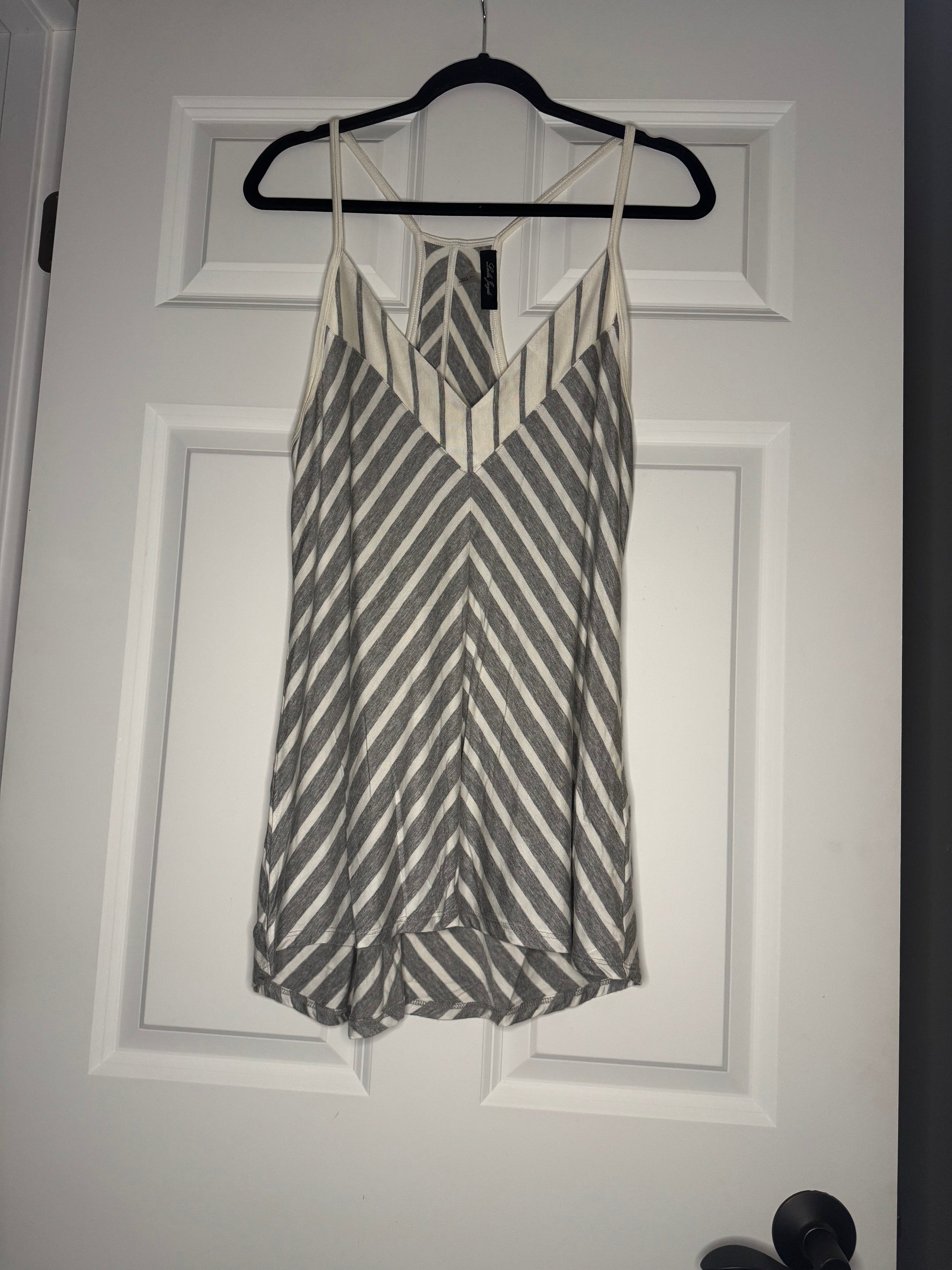 Laila jayde sleeveless blouse large gray cream stripe