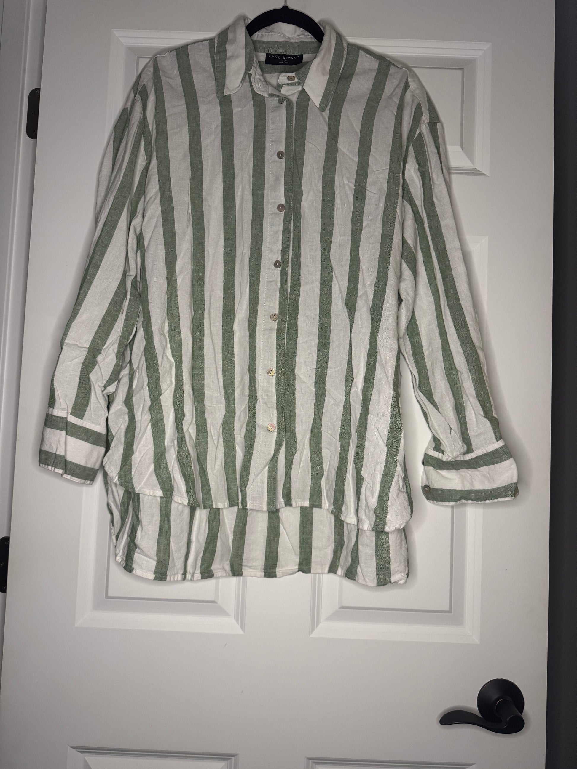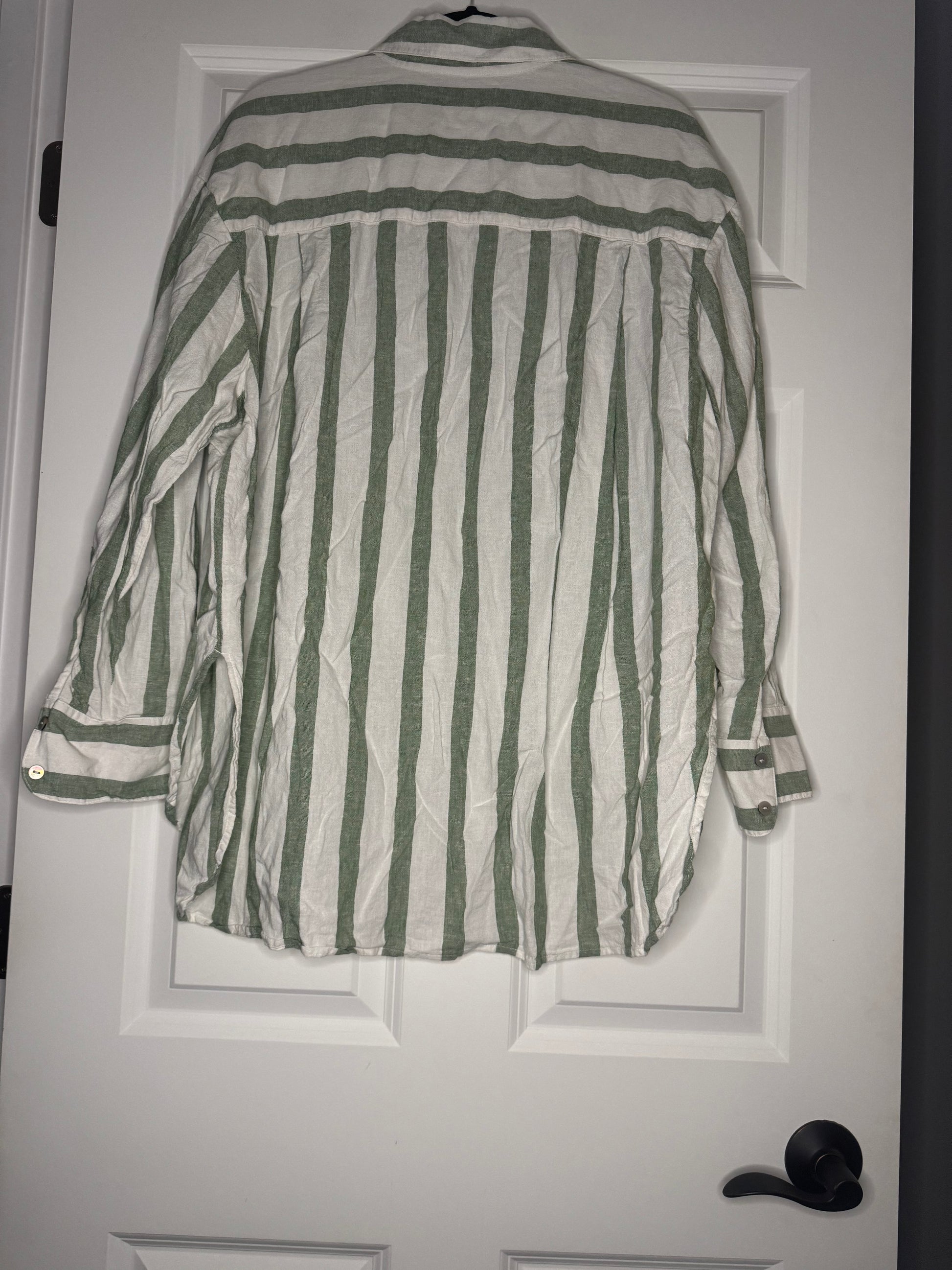 Lane Bryant long sleeve button up blouse 14/16 green white striped