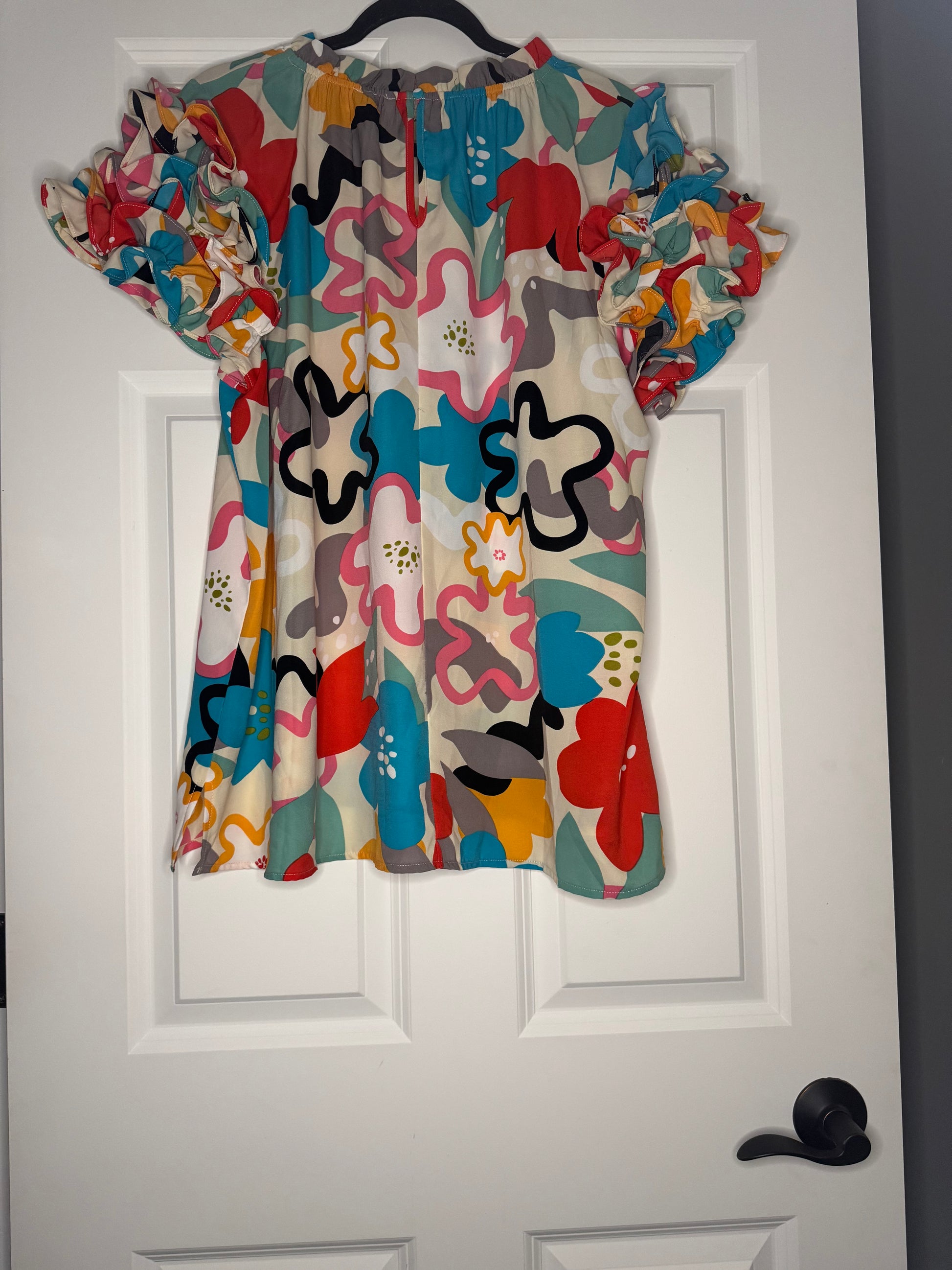 Oddy 2xl short Ruffle sleeve blouse cream with multicolor floral