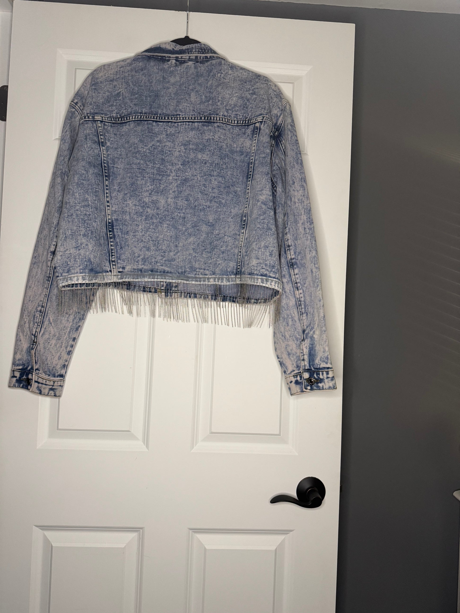 Pink lily Jean jacket w beaded fray xl