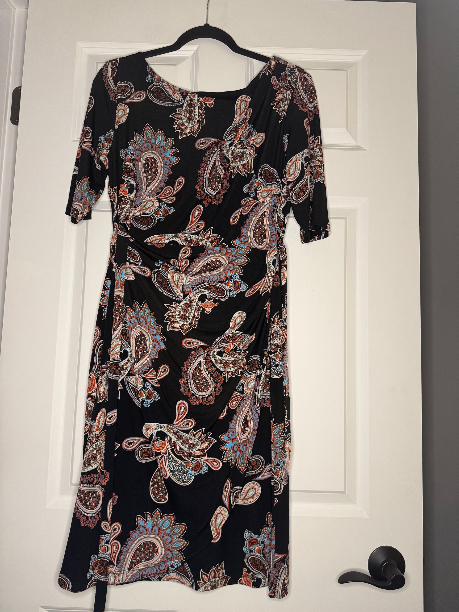Signature by Robbie bee dress w belt medium black w multicolor print