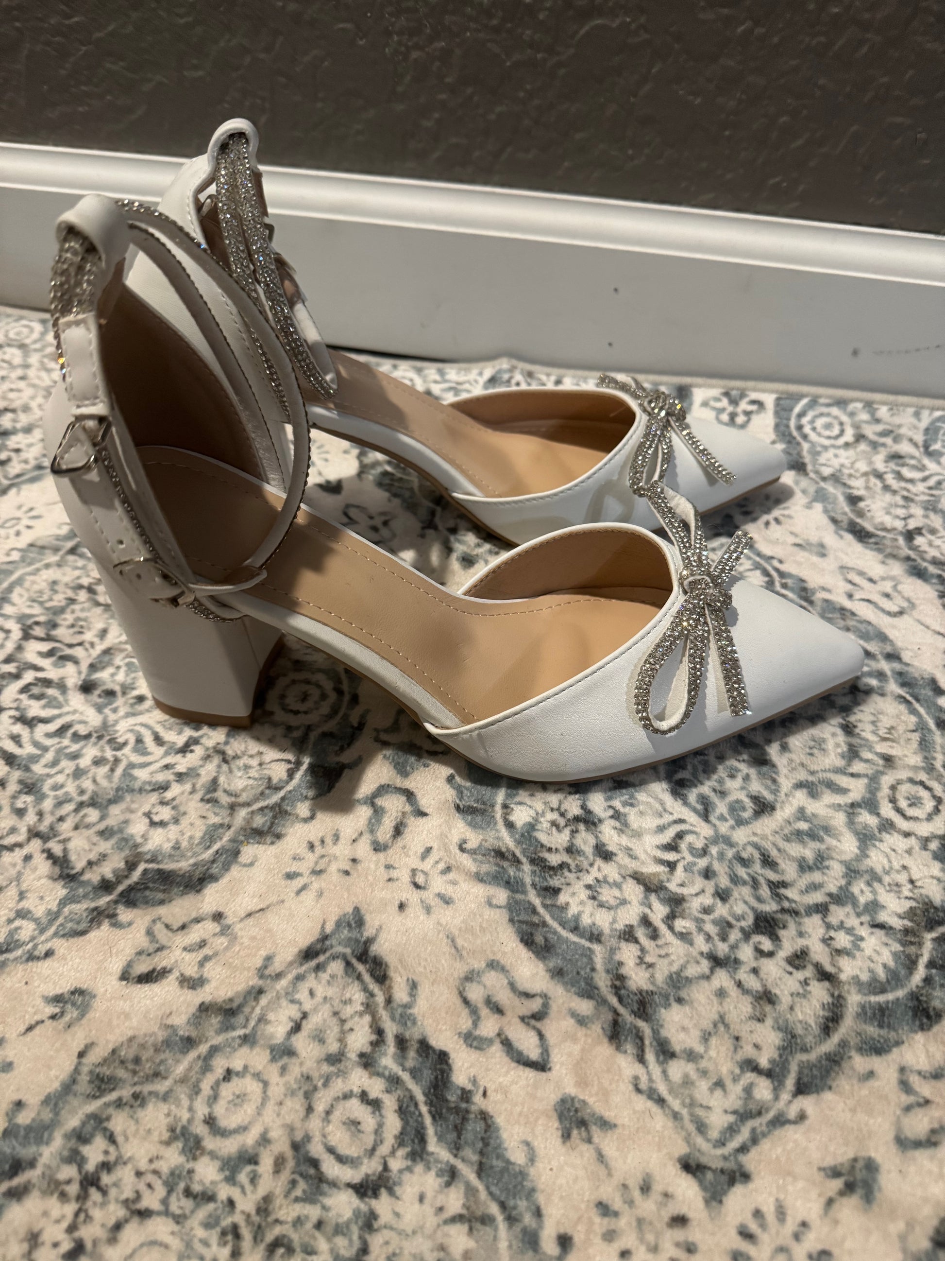 Unbranded kitten heels strappy size 38 white w rhinestone beading excellent condition